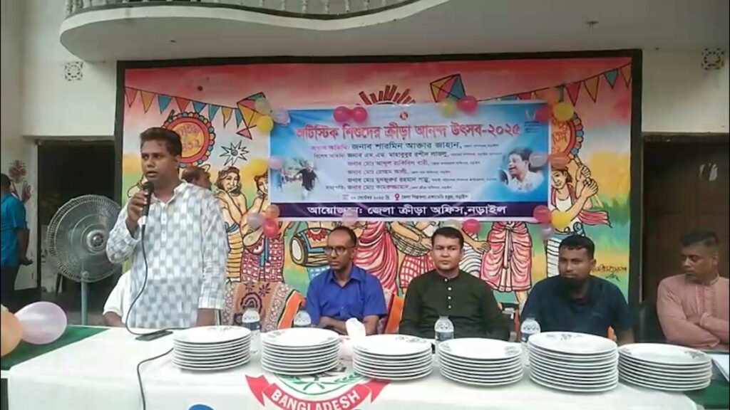 যুব ও ক্রীড়া মন্ত্রণালয় অনুমোদিত ক্রীড়া পরিদপ্তরের বার্ষিক ক্রীড়া কর্মসূচি ২০২৫-২০২৬ এর আওতায় নড়াইল জেলা ক্রীড়া অফিসের আয়োজনে সদর উপজেলায় তারুণ্যের উৎসব-২০২৫ উদযাপন উপলক্ষে অটিজম শিশুদের ক্রীড়া ও আনন্দ উৎসব জেলা শিল্পকলা একাডেমি চত্বরে অনুষ্টিত হয়। শনিবার সকাল থেকে বিকাল পর্যন্তু দিনব্যাপী বিভিন্ন কর্মসূচি পালিত হয়। অটিজম শিশুরা বিভিন্ন কর্মসূচিতে অংশগ্রহন করতে পেরে খুশি।